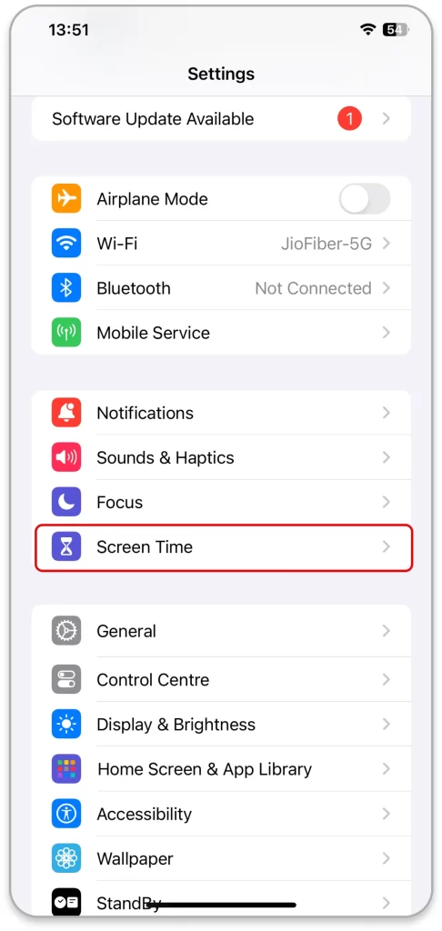 Tap on Screen Time: Look for “Screen Time” and tap it.