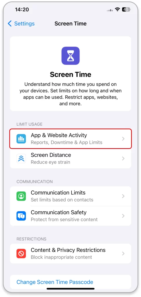 App Limits: Access ” App and Website Activity”. Tap on “App Limits” to set limits for GamePigeon and other apps. You can choose how much time your child can spend playing each day.