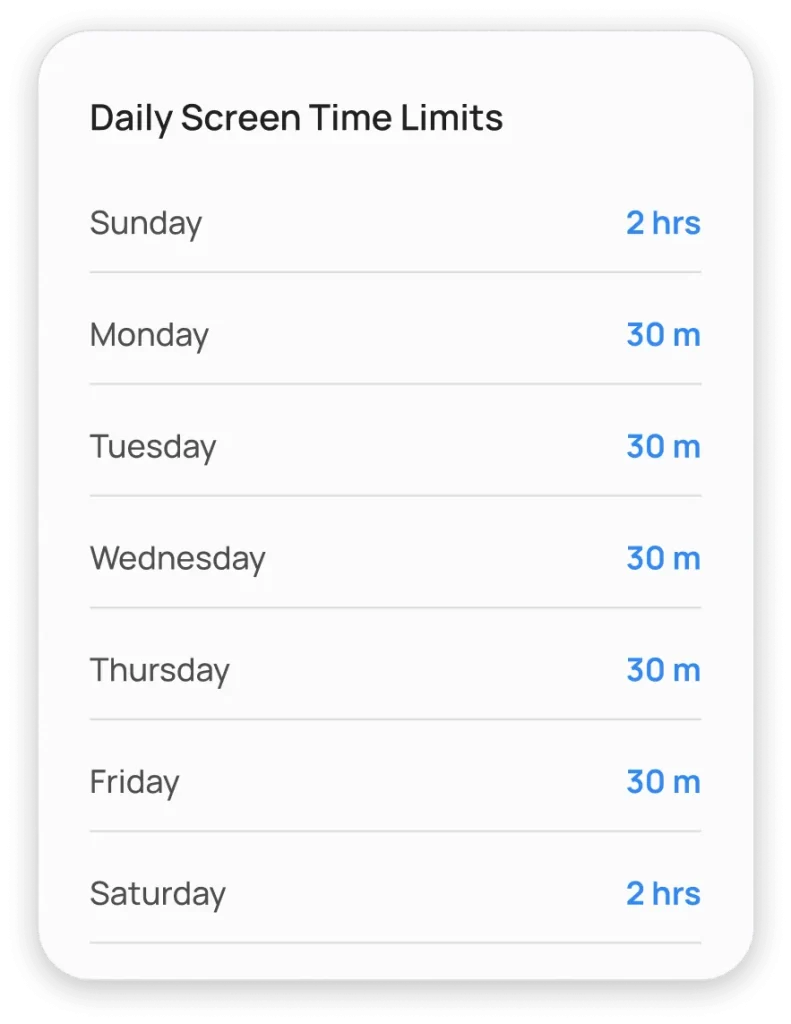 - Screen Time Limits: Mobicip allows you to set daily limits on screen time. You can decide how long your child can use their device each day for playing games, making it easier to encourage breaks and maintain balance.