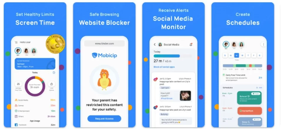 Mobicip is a comprehensive parental control app offering web and app filtering, time limits, location tracking, scheduling, activity reports, social media monitoring, and advanced web filtering for a safer digital experience for children.