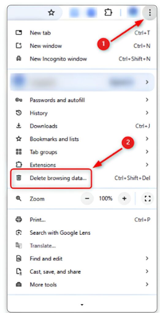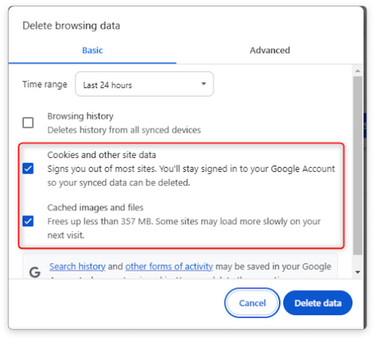 To clear the cache and cookies in Chrome browser > Open the browser > Click more (or the three vertical dots) at the top right corner > Delete browsing data > Choose a time range, like last hour or all time > Select the types of information you want to remove > Click delete data.