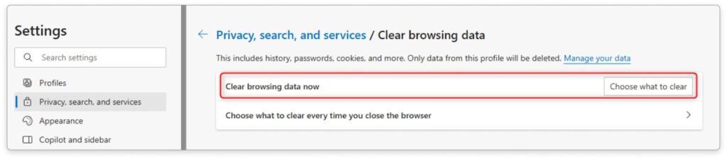 - Clearing All Data: Don’t delete saved passwords, autofill data, or browsing history unless necessary. This can cause you to lose valuable information. Instead, clear cookies from specific sites if needed.