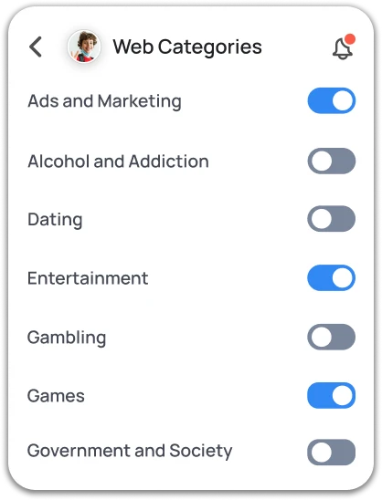 - Monitor activity usage patterns: The quick access dashboard lets you view your child’s internet activity and time spent on devices.