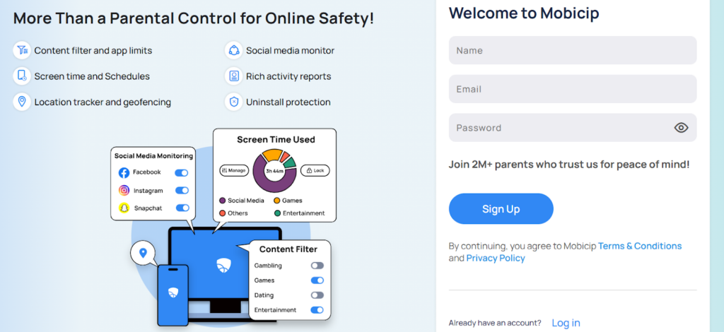 Mobicip parental controls provide a wide array of features for effective screen time management. Here’s a brief overview of what you can do with Mobicip: